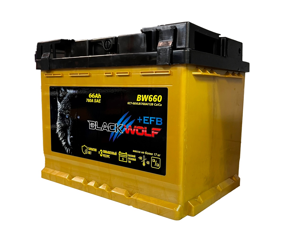 Аккумулятор, Black Wolf 066111K01BW EFB, 66 Ah, 760 А, обратная полярность